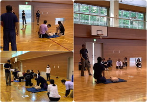 5月31日(金)と6月17日(月)に、本校で教員対象の救急法講習会が行われました。 若狭消防署から4名の消防署員の方にお越しいただき、心肺蘇生法やAEDの使用方法を教えていただきました。 実際に起こり得る場面を想定した実践練習では、全教員が協力して取り組み、その時「取るべき行動」を確認することができました。 大変有意義な講習会になりました。