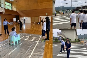 5月30日(金)と6月1日(月)に、交通安全教室を実施しました。 30日は、小学部高学年と中学部が体育館で、1日は高等部が遠敷第四公園付近の交差点で、 それぞれ小浜署の警察官や、小浜市役所の交通指導員さんの指導を受け、安全な横断歩道の渡り方を学びました。