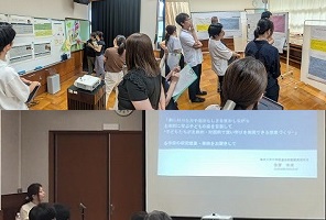 8月27日に校内教員研修がありました。 前半は各学部の研究概要の経過報告をし、後半は各学部毎に会場を設け、ポスター発表を行いました。 教員同士が学部を越えて協議を深めたり、研究助言者である福井大学 笹原未来先生からご助言をいただいたりと、 とても有意義な時間となりました。